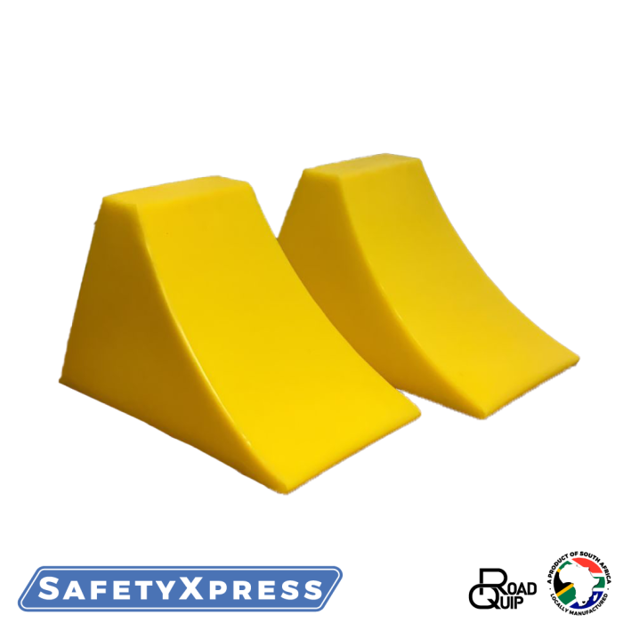 RoadQuip® Wheel Chocks are designed to keep vehicles safely in place during parking, loading, and maintenance. Position the chock behind the wheel of a stationary vehicle to reduce the risk of rolling. Manufactured from rigid, robust plastic for strength, the range includes a Large Filled variant suited to mining and heavy maintenance applications. The bright yellow finish improves visibility around busy work areas.